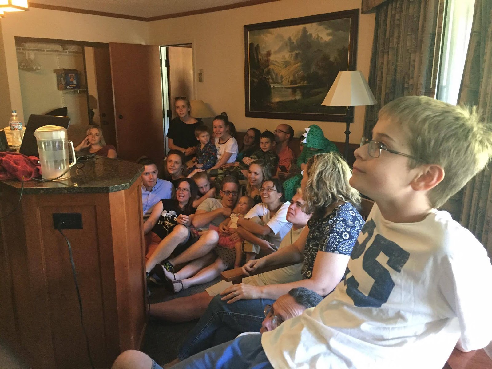 Our family held our annual family reunion at Snowbird this week without us. We were able to connect with them a bit using Messenger. My reaction: “It would be good to be in the middle of them, under the pile, surrounded by their laughter. At least there is laughter and piles and games and good food.” They took family names to the Salt Lake Temple so the young people could do baptisms. They hiked and swam and made time to share testimony together. At least we have pictures, notes, Messenger, and the phone to keep us connected.